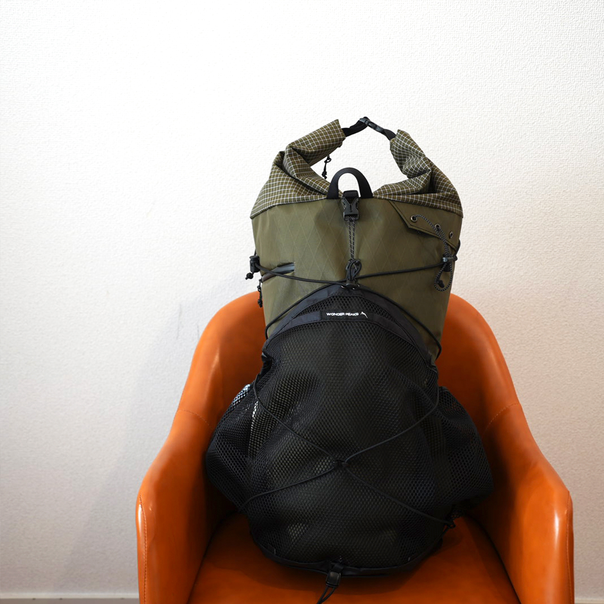 ザック本体はシンプルなレイアウトになっていますが、ネット部分を丸く容量を稼ぐデザインにしました。